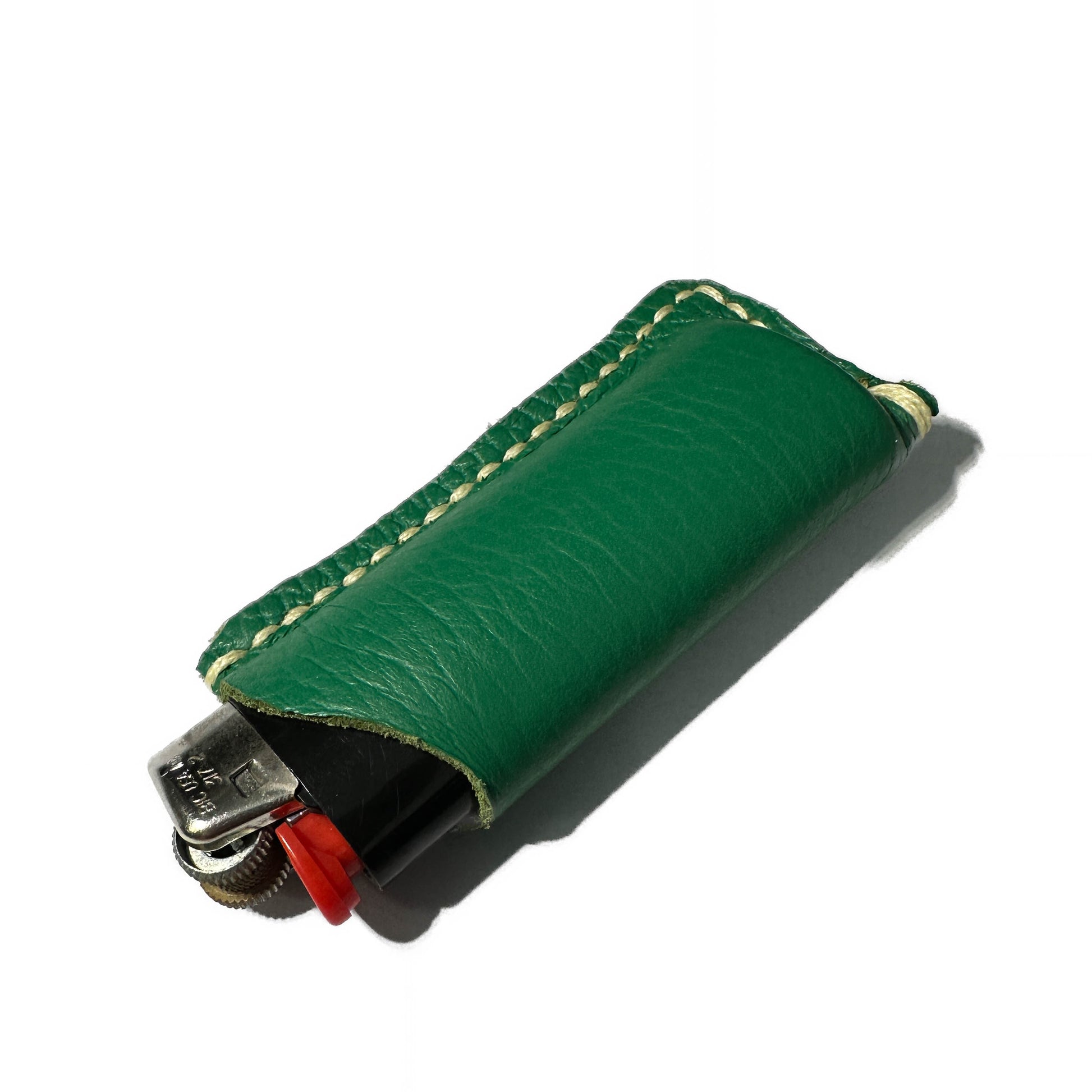 LIGHTER HOLSTER: Pebbled Envy & Yellow Waxed Thread
