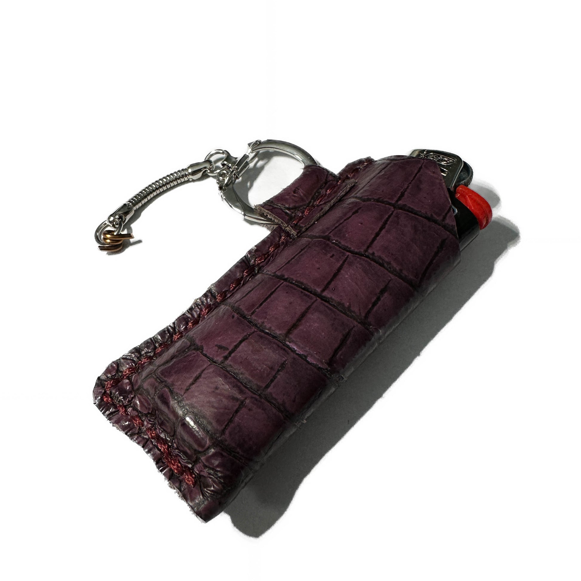 RINGED LIGHTER HOLSTER: Royal Crocodile & Amethyst Waxed Thread