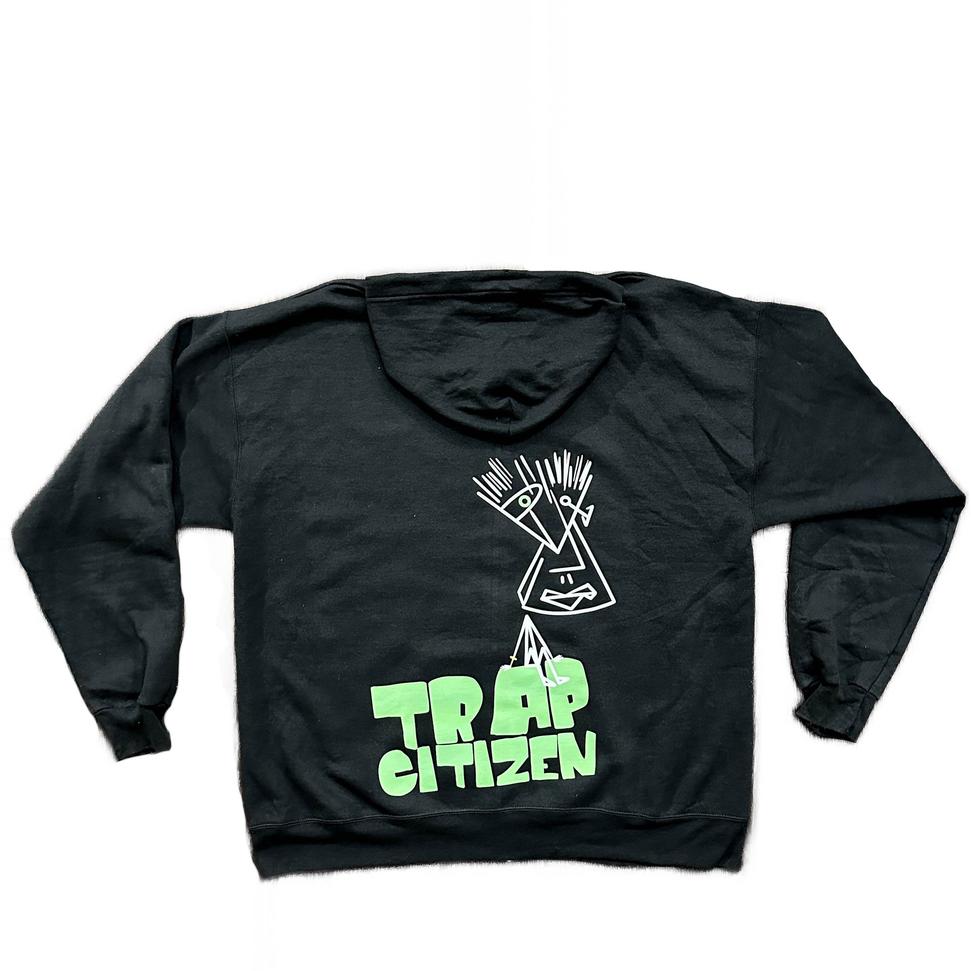 - printed on an unmarked hooded zip-up; size is an assumed L-XL; material is an assumed 100% cotton